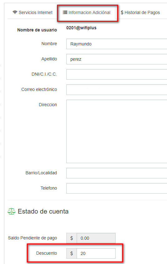 3En la seccion Información adicional buscamos el apartado Estado de cuenta, colocamos la cantidad a descontar en cada factura y damos click en guardar.